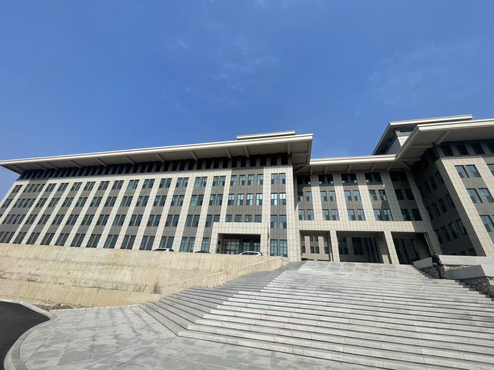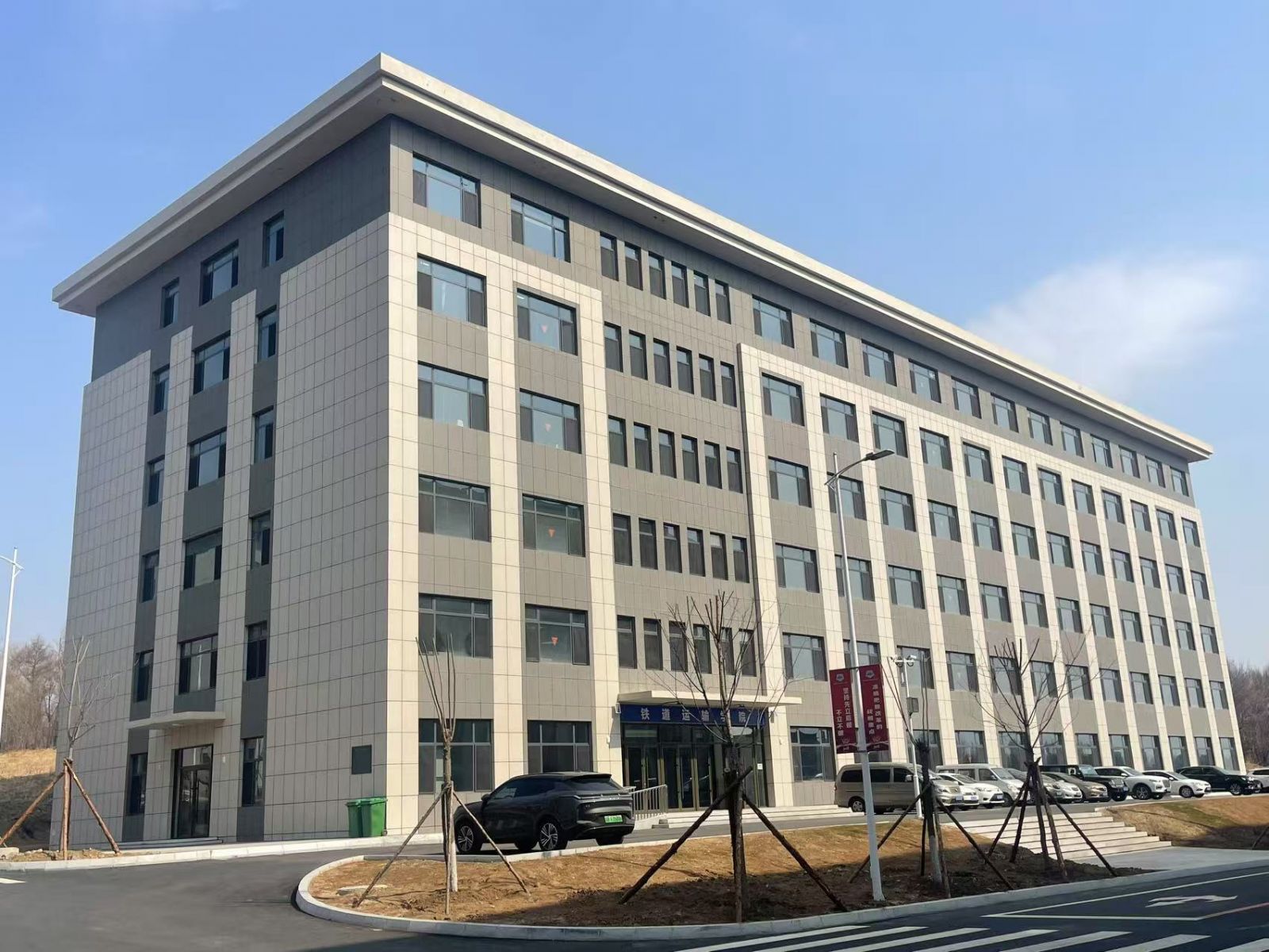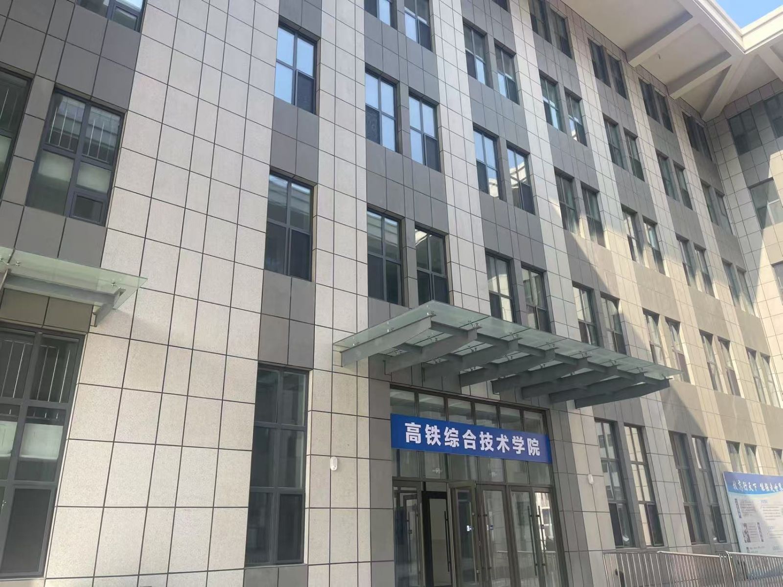 學院外墻使用芝麻灰與白麻陶瓷薄板 芝麻灰的沉穩(wěn),映照鐵路人嚴謹求實的品格 白麻的素凈,承載學子探求真知的初心