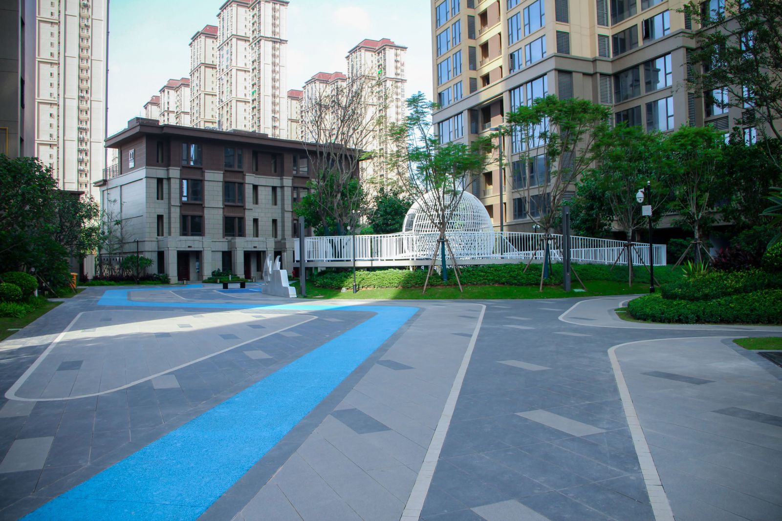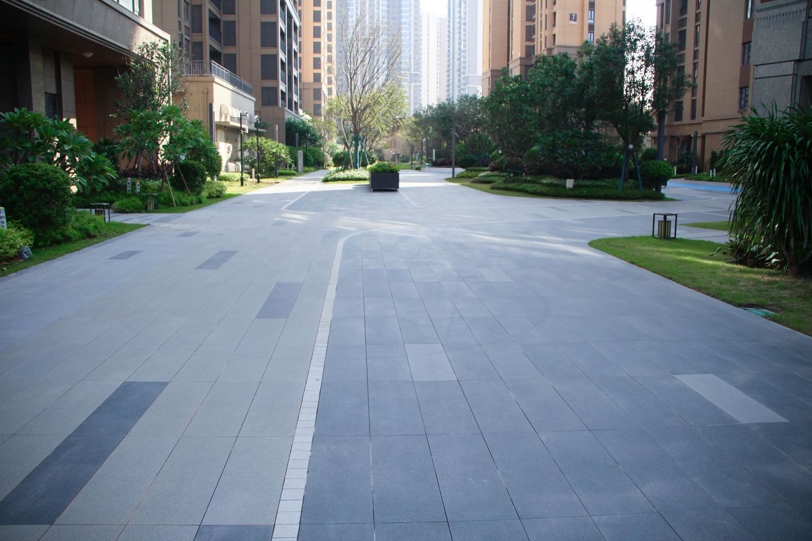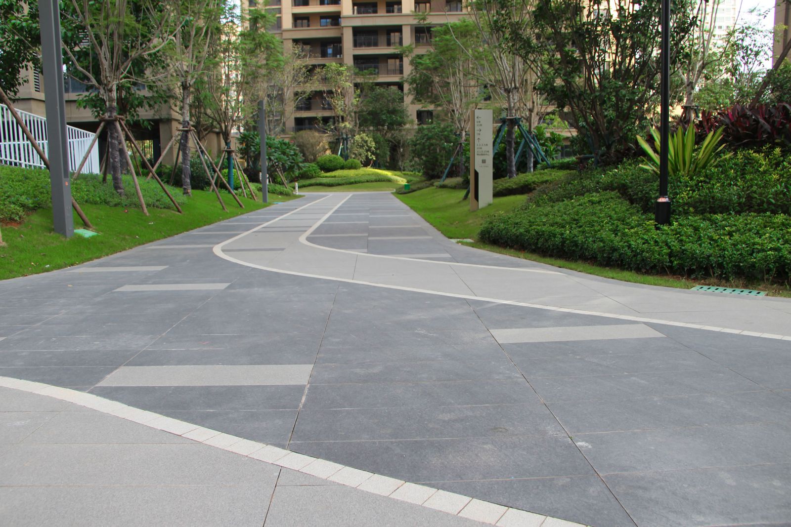 協(xié)進(jìn)地鋪石瓷磚工程案例-力高君逸花園 項目為高檔社區(qū),小區(qū)園林采用使用協(xié)進(jìn)300*600、300*900芝麻灰,芝麻黑產(chǎn)品設(shè)計鋪貼,搭配芝麻白產(chǎn)品作為線條。