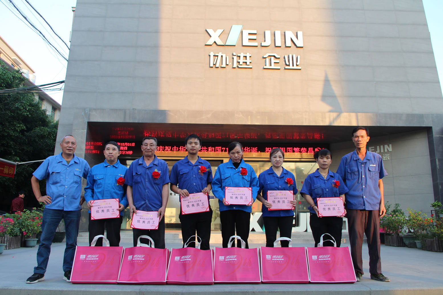 王少華總經(jīng)理等公司領(lǐng)導(dǎo)為34名2020年度優(yōu)秀員工頒發(fā)獎狀獎品,借此感謝全體協(xié)進(jìn)人一年來的辛勤勞動,同時祝愿偉大的祖國繁榮昌盛、國泰民安。