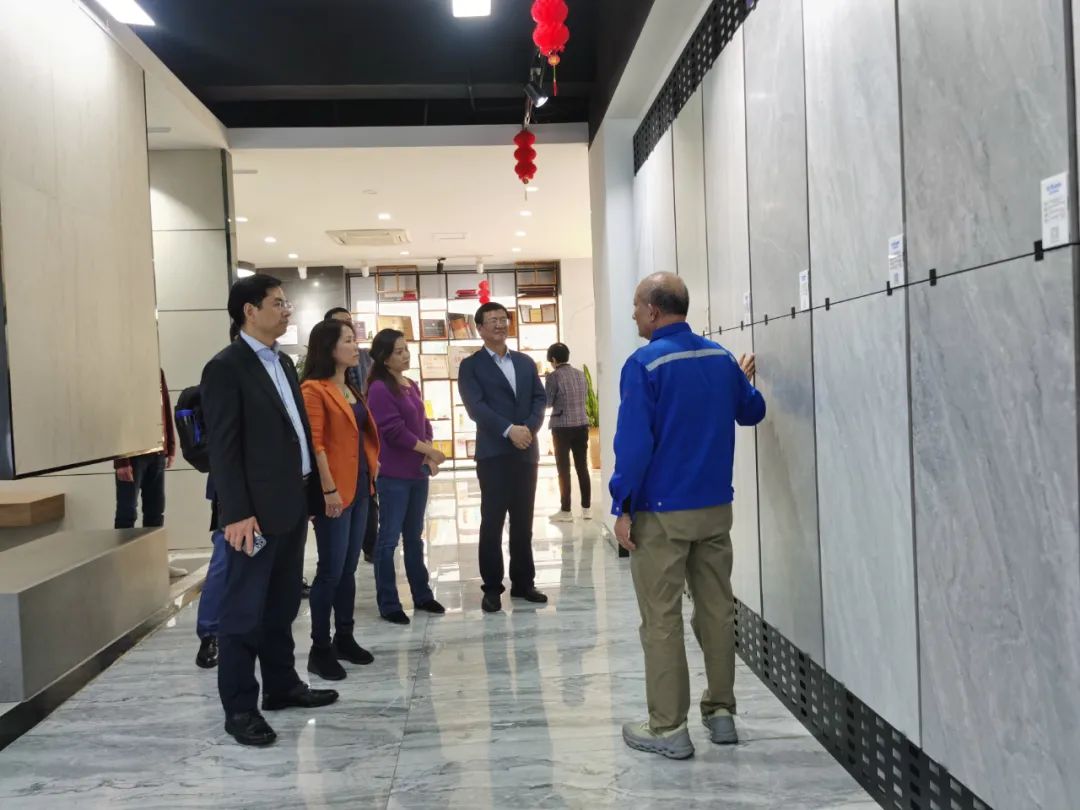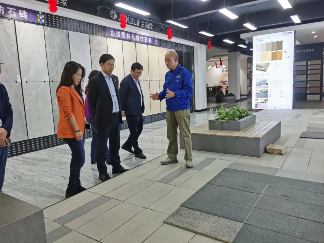 周會(huì)長(zhǎng)一行在南安協(xié)進(jìn)公司董事長(zhǎng)王家助的介紹下一邊了解企業(yè)30年來(lái)的發(fā)展歷程,一邊參觀產(chǎn)品展廳,對(duì)協(xié)進(jìn)陶瓷在大規(guī)格薄板、大板、陶瓷薄板復(fù)合保溫一體板、地鋪石等綠色節(jié)能新產(chǎn)品的研發(fā)生產(chǎn)深入了解。希望利用協(xié)會(huì)在建筑開發(fā)產(chǎn)業(yè)鏈上的優(yōu)勢(shì)和資源,通過(guò)此次的商務(wù)考察活動(dòng),尋求開拓加拿大和北美市場(chǎng)的合作。