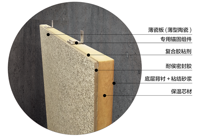 薄瓷板系列產(chǎn)品還可以與保溫材料復(fù)合成為陶瓷保溫復(fù)合一體板,既能夠達(dá)到仿石瓷磚的外觀裝飾效果,又可以起到建筑物的節(jié)能保溫作用,而且施工更便捷高效,可以得到廣泛的運(yùn)用與推廣。